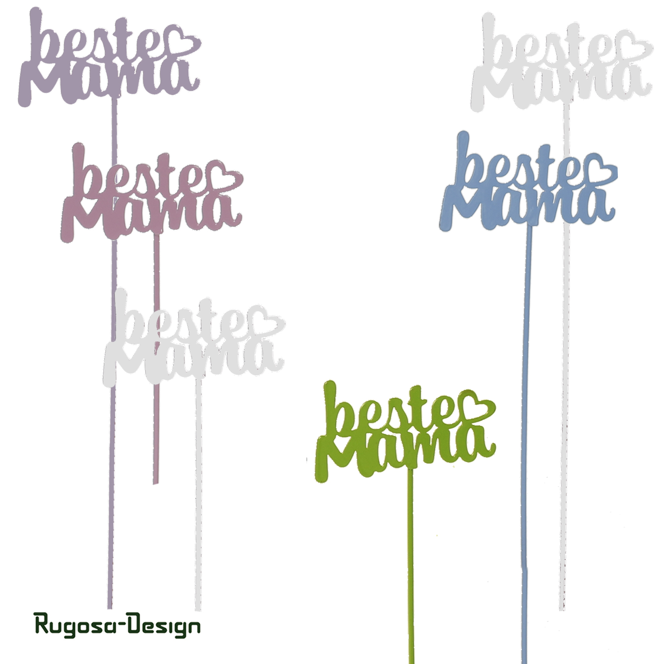 Metall-Schriftzugstecker "Beste Mama", pastellig bunt, 5fach, 9,5cm