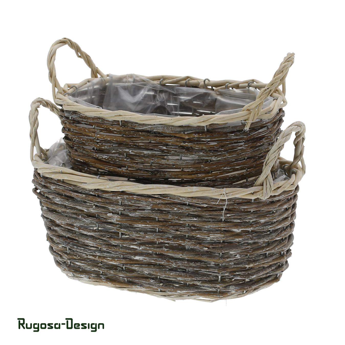 Weiden-Pflanzschalen mit Henkel oval,