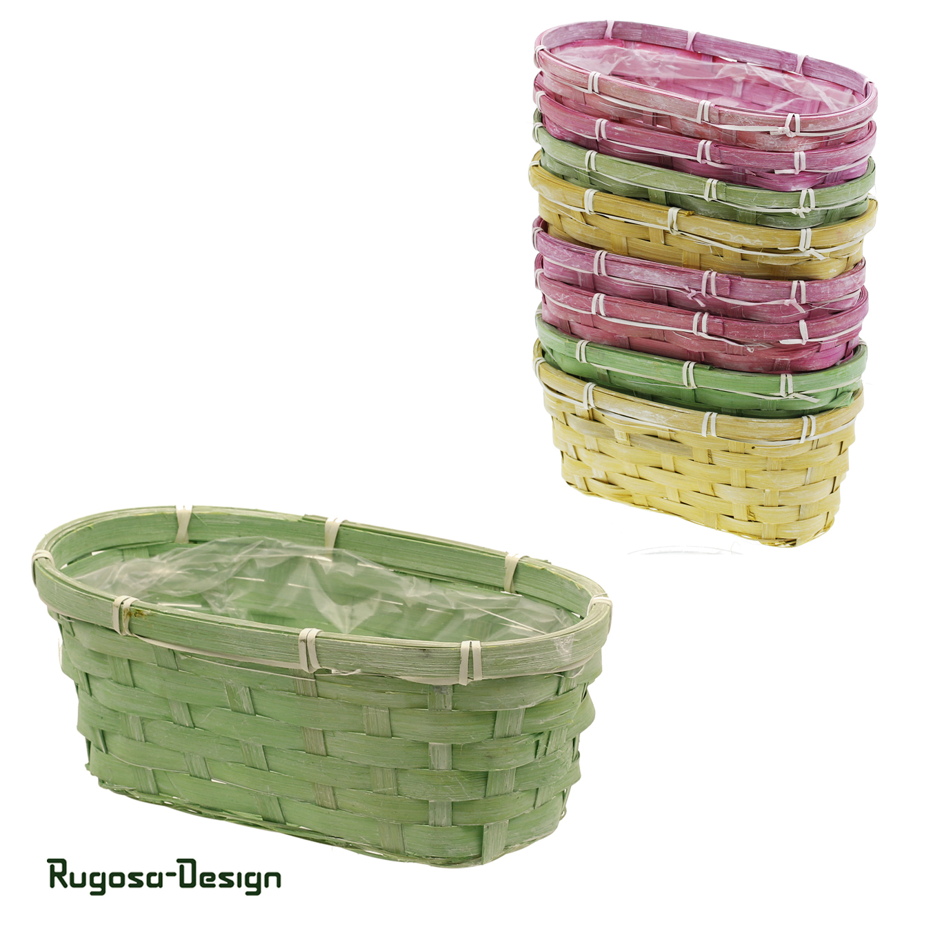 Bambussplitt-Pflanzschale, gelb/grün/rosa, 25x12cm