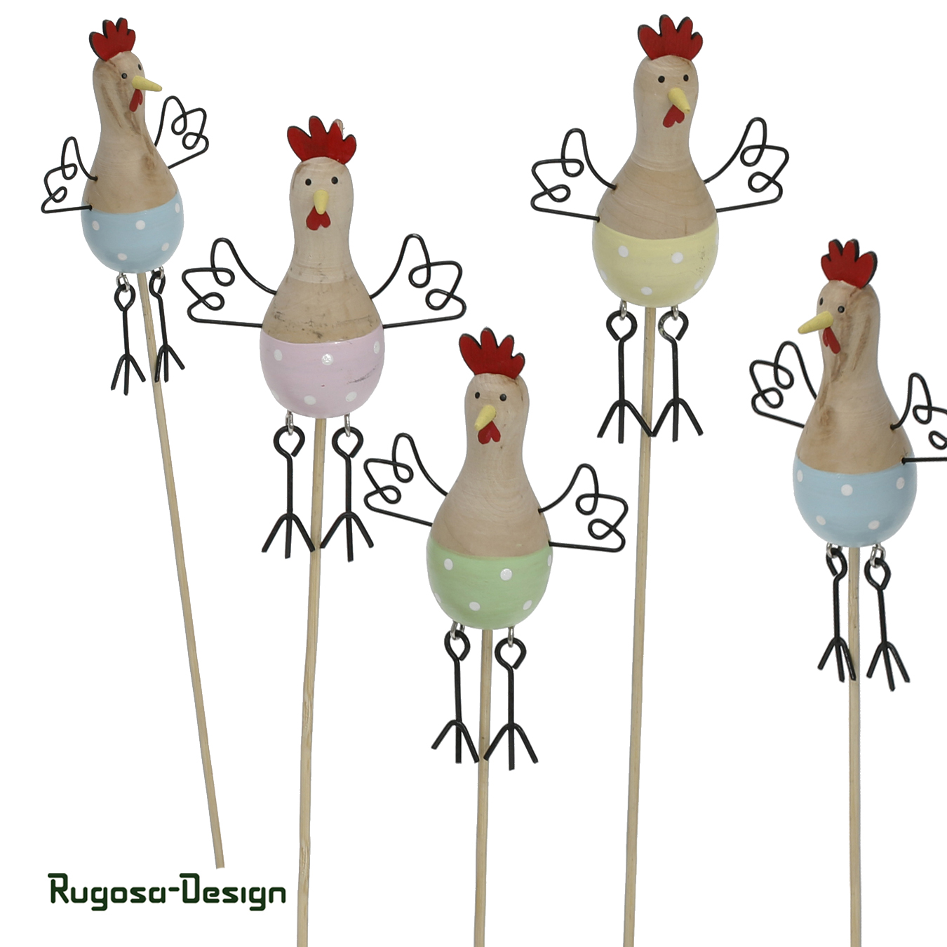 Holz-Huhnstecker, farbl. sort., 4fach